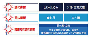「紫外線」、「高エネルギー波長(青色光)」が人体に及ぼす影響(例)