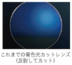 これまでの青色光カットレンズは、コーティングで青色光を反射させてかっとしていました。