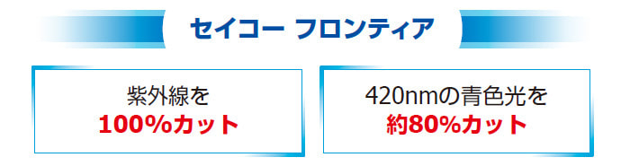 セイコーフロンティアは、青色光を吸収してカットするため、表面のギラつきがなく日常使いに最適です。